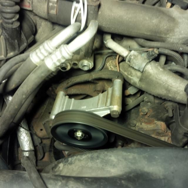 Thanks! I would up buying and installing the Dorman pulley and fabricating a bracket, worked great. I simply left all the AC components hooked up and I pulled them back, out of the way and strapped them to the air intake boot bracket on the fender well. That way when I am ready to fix the AC, everythign is still there and ready to be replaced....