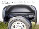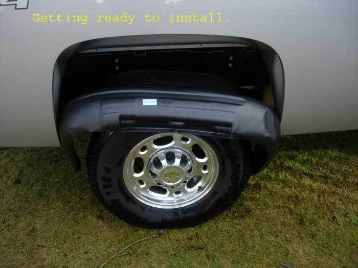 after looking at the ugly rear wheel openings long enough (2 weeks) today i installed the G.M. 19166682 rear wheel opening inserts. what an improvment, they made me much happier with the appearance of my all white truck.